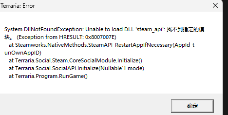 资源收集于网络,如有能力请支持正版。在这个贴子(https://tr.monika.love/resources/90/)下载,内含游戏本体和运行库。同样在安装运行库后,运行解压出来的Terraria.exe,应该就可正常运行了。