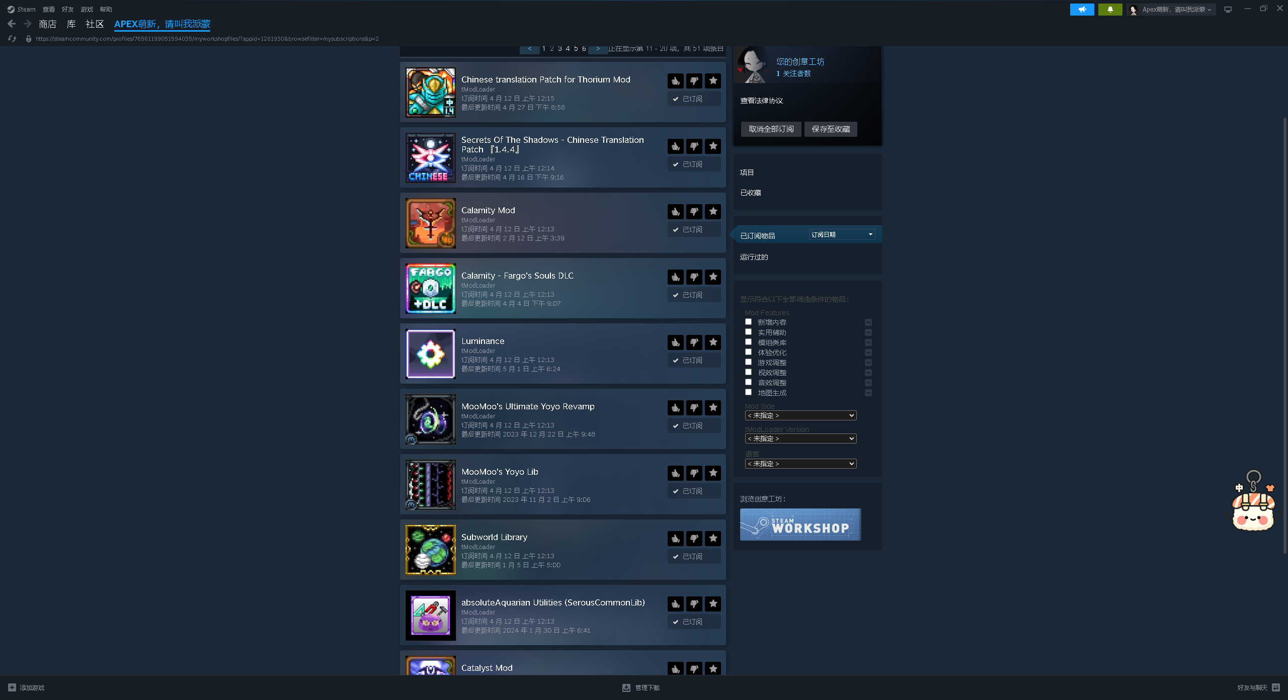 就原本整合包加了一些汉化,其他的没加啥,但是瑟银mod里面有个深海的地形不刷怪不知道为啥,导致我想打一个叫遗忘之主的boss大不了,导致瑟银的最终boss也打不成,有没有懂的大佬。